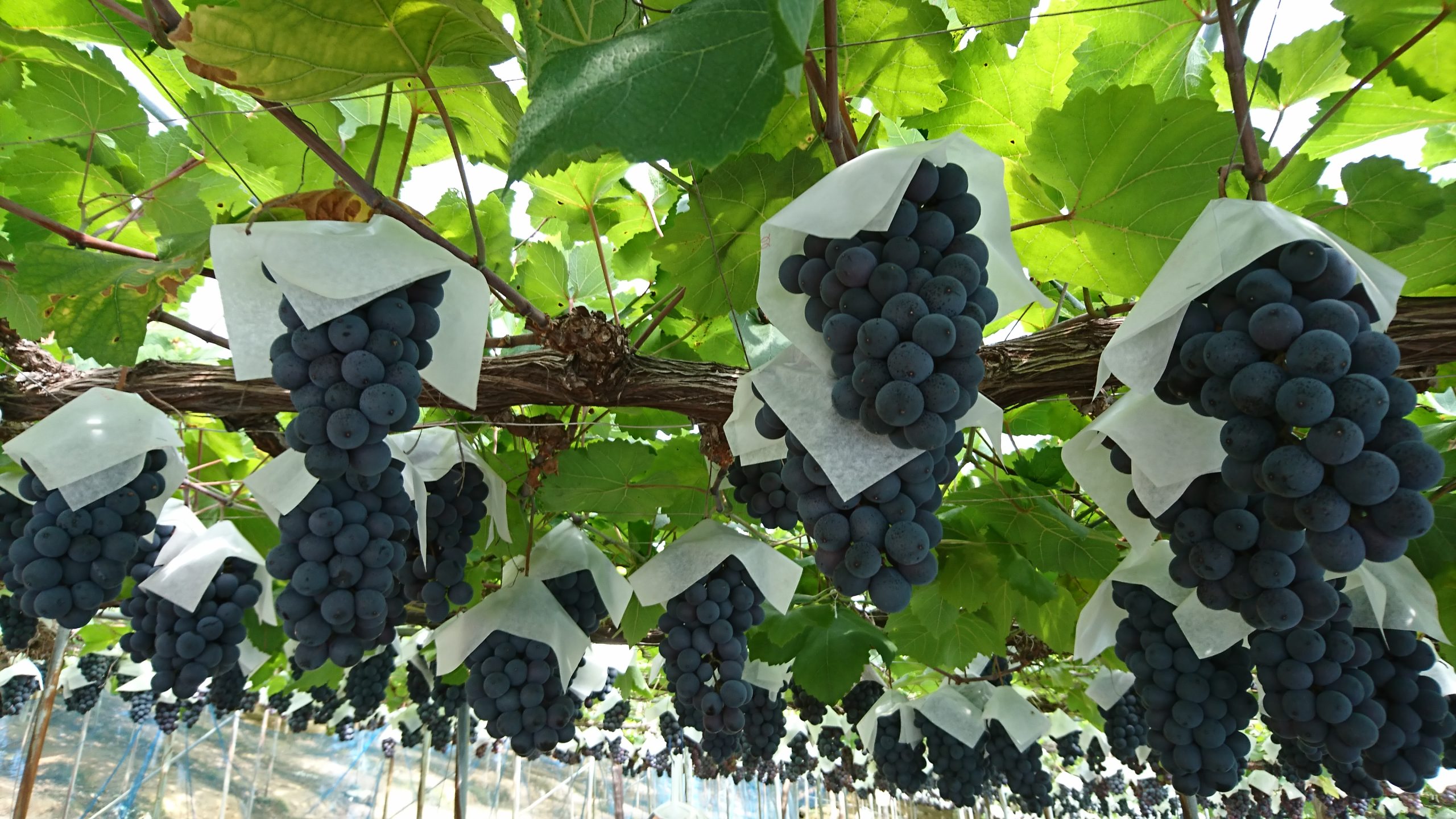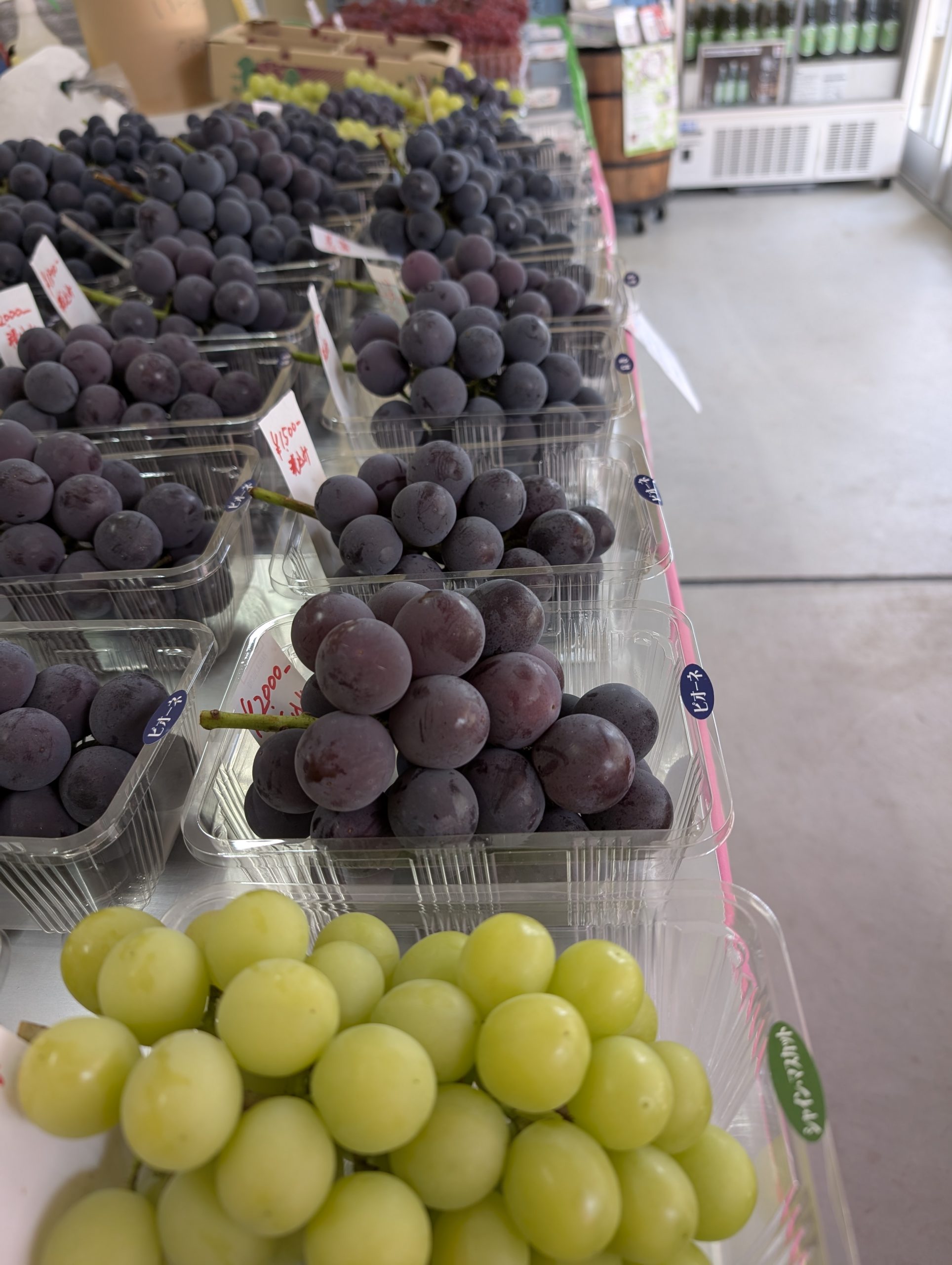 ピオーネ、シャインマスカット、ベリーA、紅瑞宝、BKシードレス、高妻などなど、各品種の収穫期についてはお問い合わせください。レジャーシートは持参、お弁当の持ち込み OK。駐車場・水洗トイレ完備。